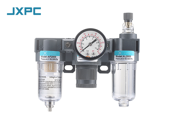 The 3-pc. units consist of a filter, regulator and lubricator. Combinations include mounting brackets and pressure gauges.